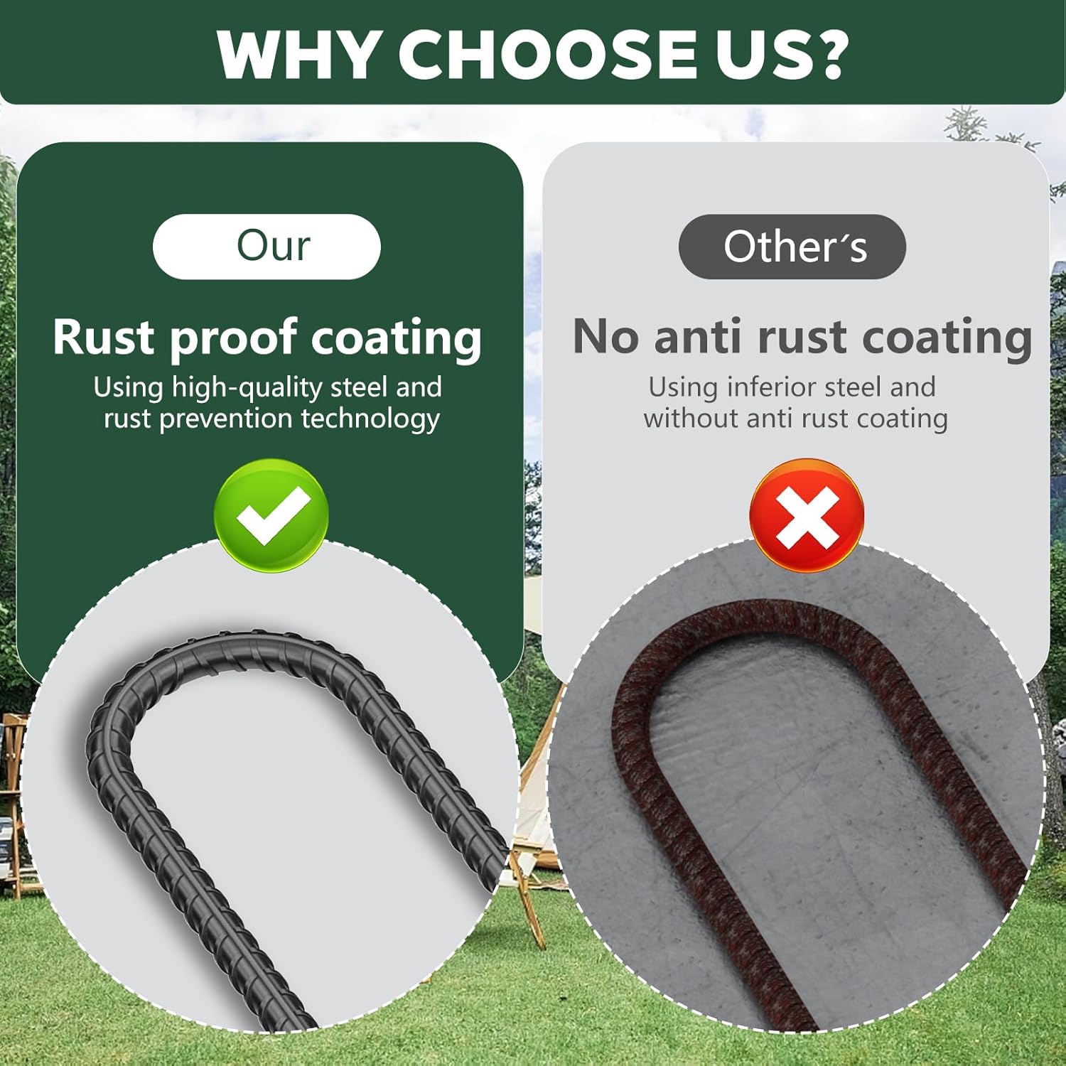 10 Pieces Trampoline Stakes Anchors High Wind Heavy Duty,U Shaped Garden Hooks Stakes for Ground,Trampoline Tie Downs Anchor Kit,Bounce Horseshoe House Stake,Rebar Camping Tent Stakes,12 Inch Long
