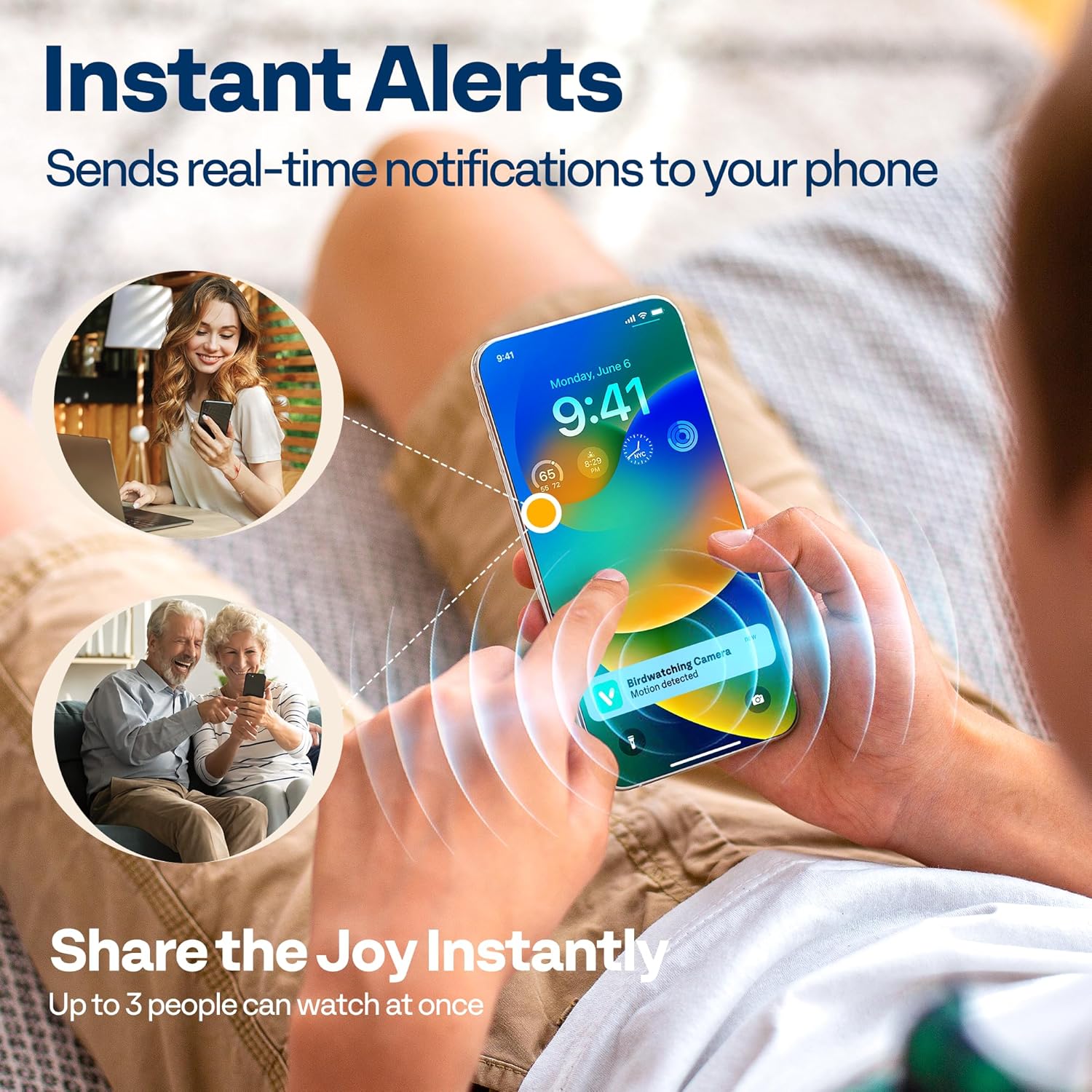 - WATCH BIRDS REAL-TIME ANYTIME, ANYWHERE: The VIVOHOME smart birdbath features a 2K high-resolution camera with full-color night vision, streaming clear, vivid footage directly to your smartphone both day and night; Simply connect via the app to watch birds drink, bathe, or play from anywhere at any time; The external antenna ensures a stable 2.4GHz WiFi connection (not compatible with 5GHz), eliminating signal dropouts for a seamless viewing experience