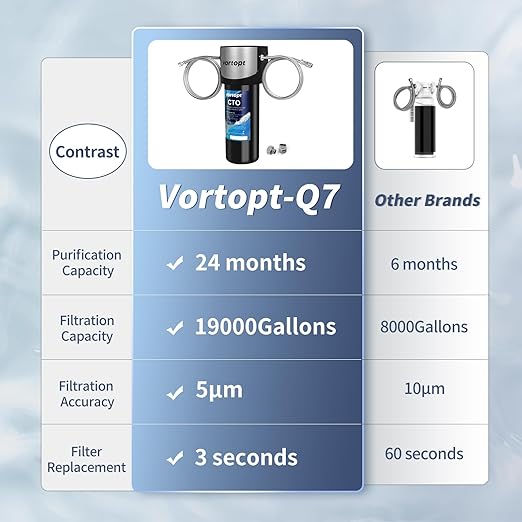 Vortopt Q7 Under Sink Water Filter System,Reduces Chlorine,Lead,Bad Taste & Odor,Under Counter Water Filter Direct Connect to Kitchen Faucets,NSF/ANSI 372/42 Certified,2 Year.