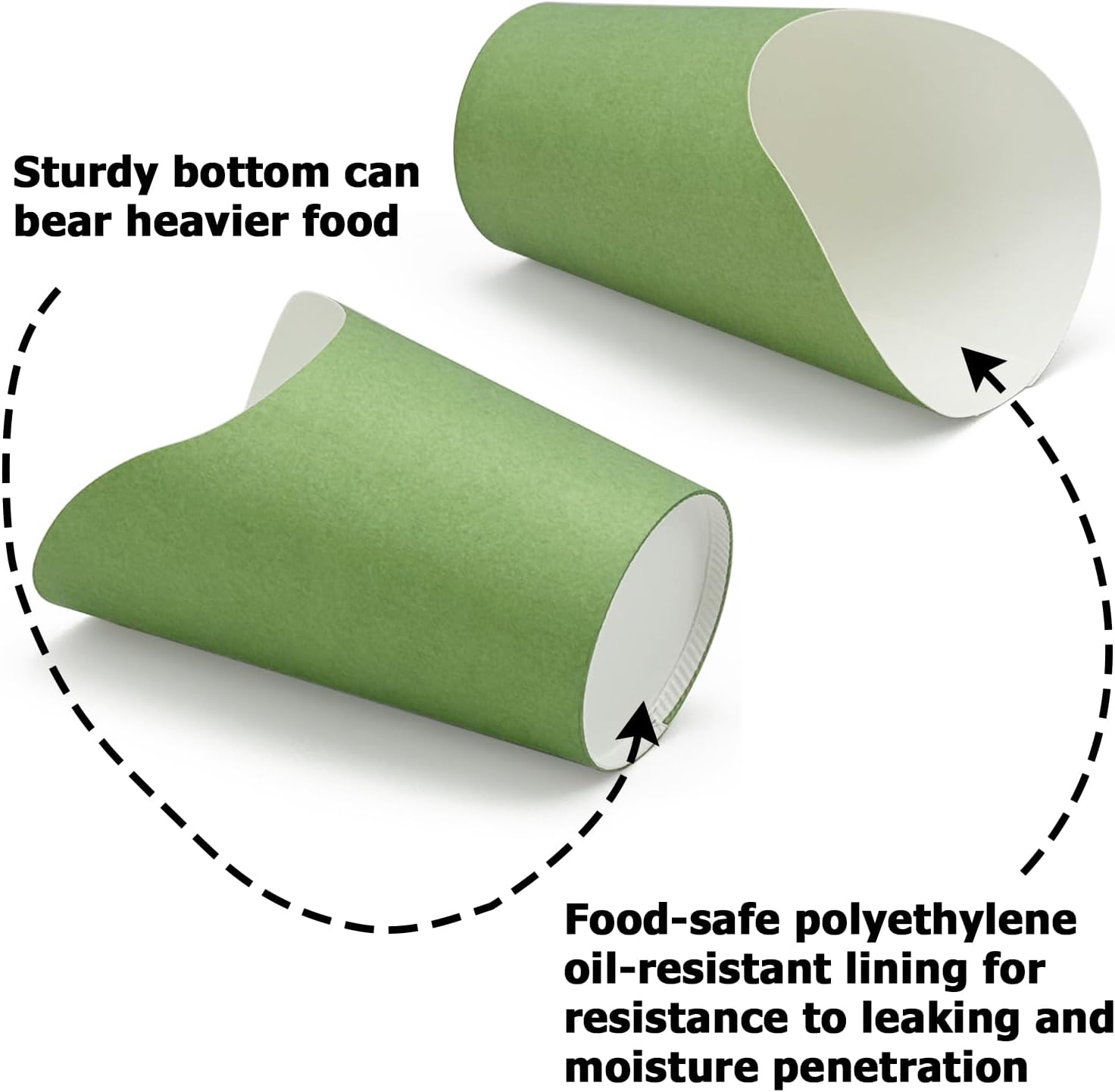 - [Resistance to Moisture Leakage and Penetration] - Each of sage green paper cups holder has food-safe oil-resistant lining for resistance to leaking and moisture penetration. Giving your customer or friends a delightful food cups packed with delicious without any greasy mess or embarrassing stains!