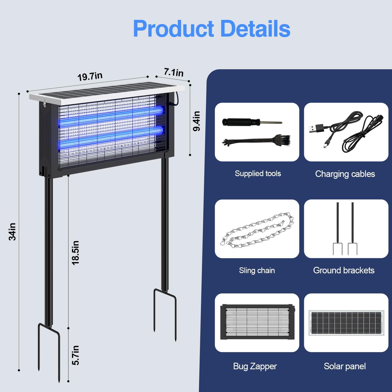 - 【Dual Charging Mode】Our mosquito zapper features a premium glass solar panel (daytime charging + night activation) for outdoor use, energy saving and convenient. Additionally, it can be charged by the included USB cable in 3 hours, also suitable for cloudy weather and indoor use.
