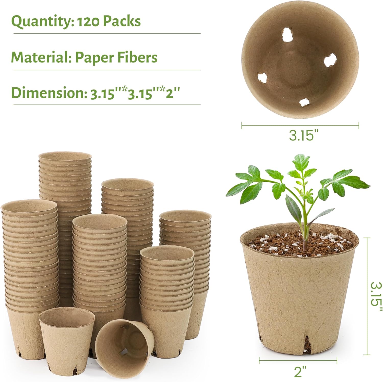 - 【Versatile for All Seed Types】Ideal for flowers, herbs, or vegetable starters like tomatoes, cucumbers, and peppers. Whether you're planting in a garden bed, greenhouse, or container, these 3.15" pots provide the perfect start for your planting journey.