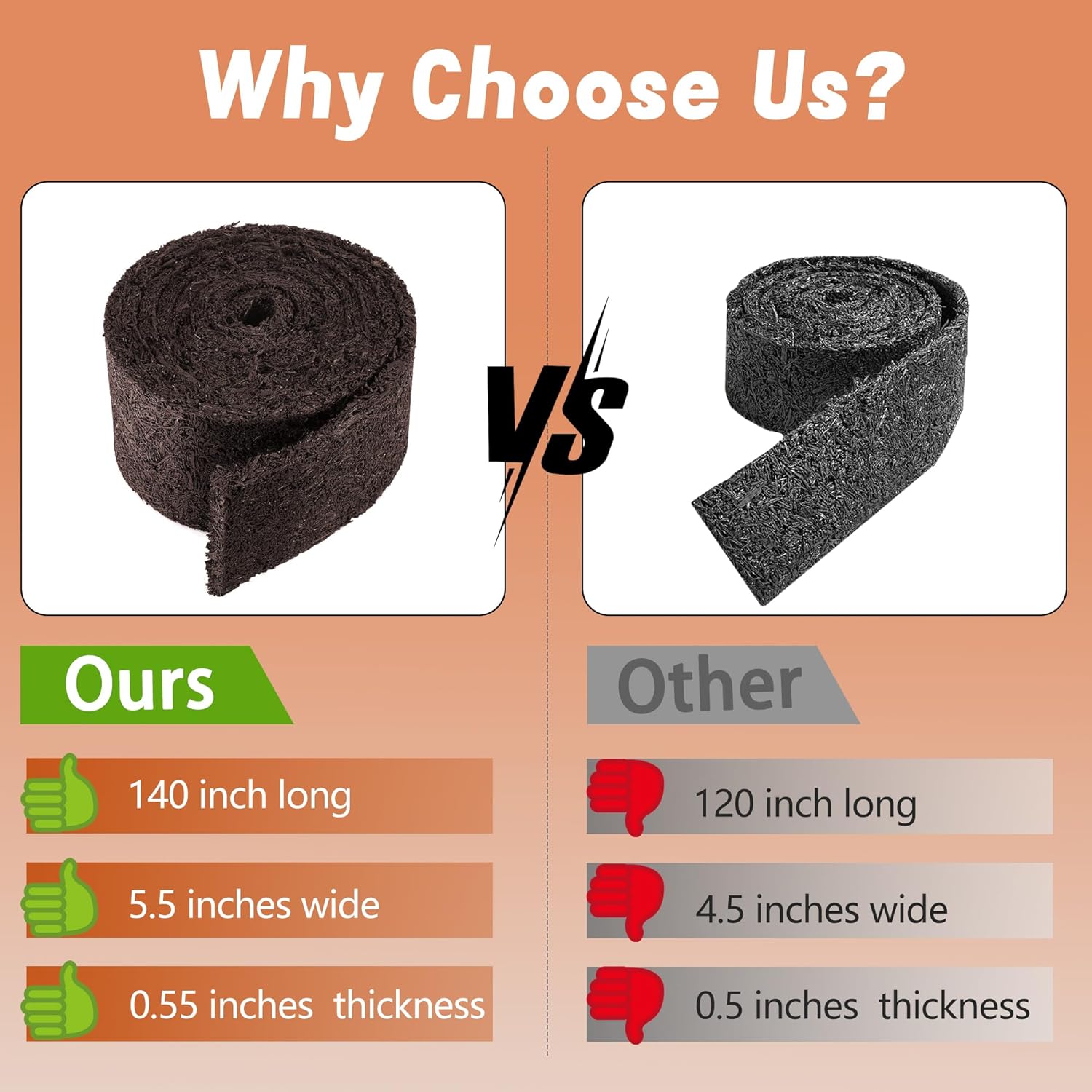 - Cut to Fit: Our rubber mulch for landscaping is neat, tidy, and helps enhance the natural look of your outdoor landscaping. Measuring 140 x 5.5 x 0.55 inch, it can be easily cut to fit shaped garden beds or wrap around growing trees.