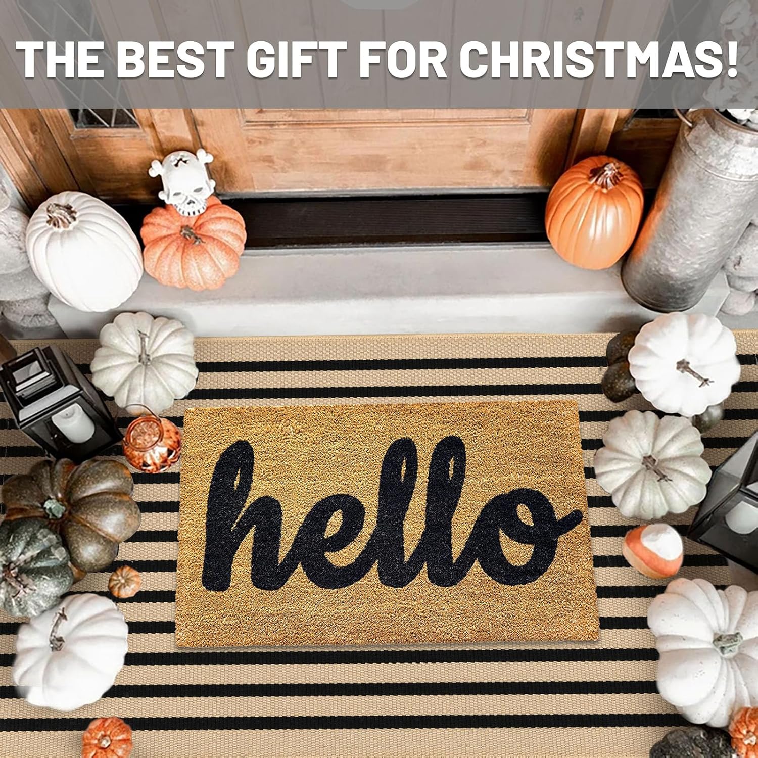 - Classic Pattern Design: Enhance your home decor with this striped indoor outdoor rug. The chic design is ideal for decorating your front porch, entryway, or living room. It also makes a thoughtful gift for Christmas, Halloween, or Thanksgiving