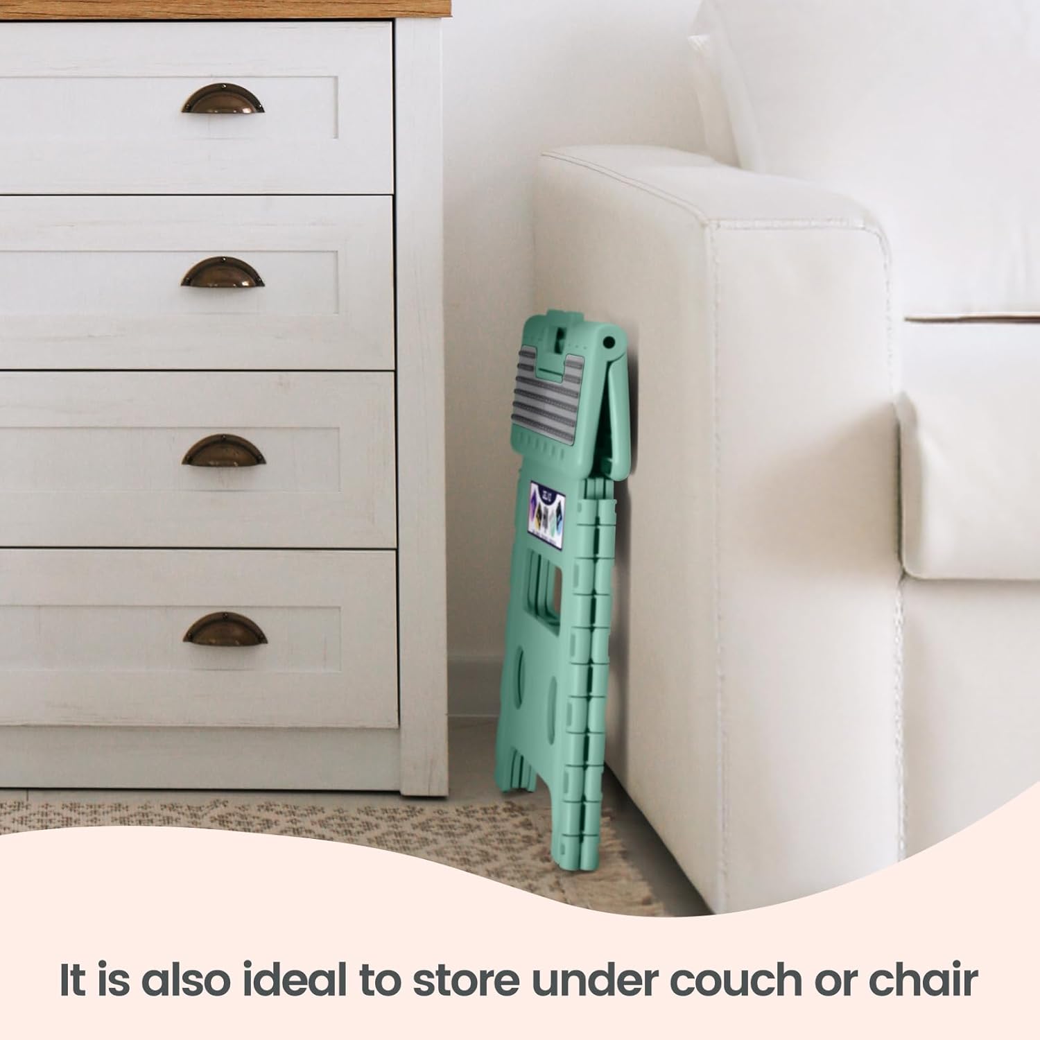 Delxo Folding Step Stool 13 Inch Non-Slip Foldable Stools for Kids & Adults Up to 300 LBS Kitchen Collapsible Fold Up Stepping Stool with Dotted 1 Pack Green