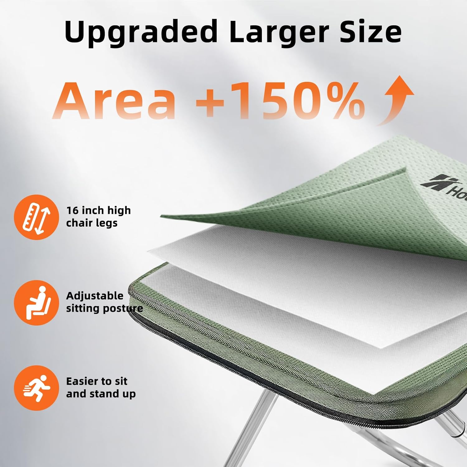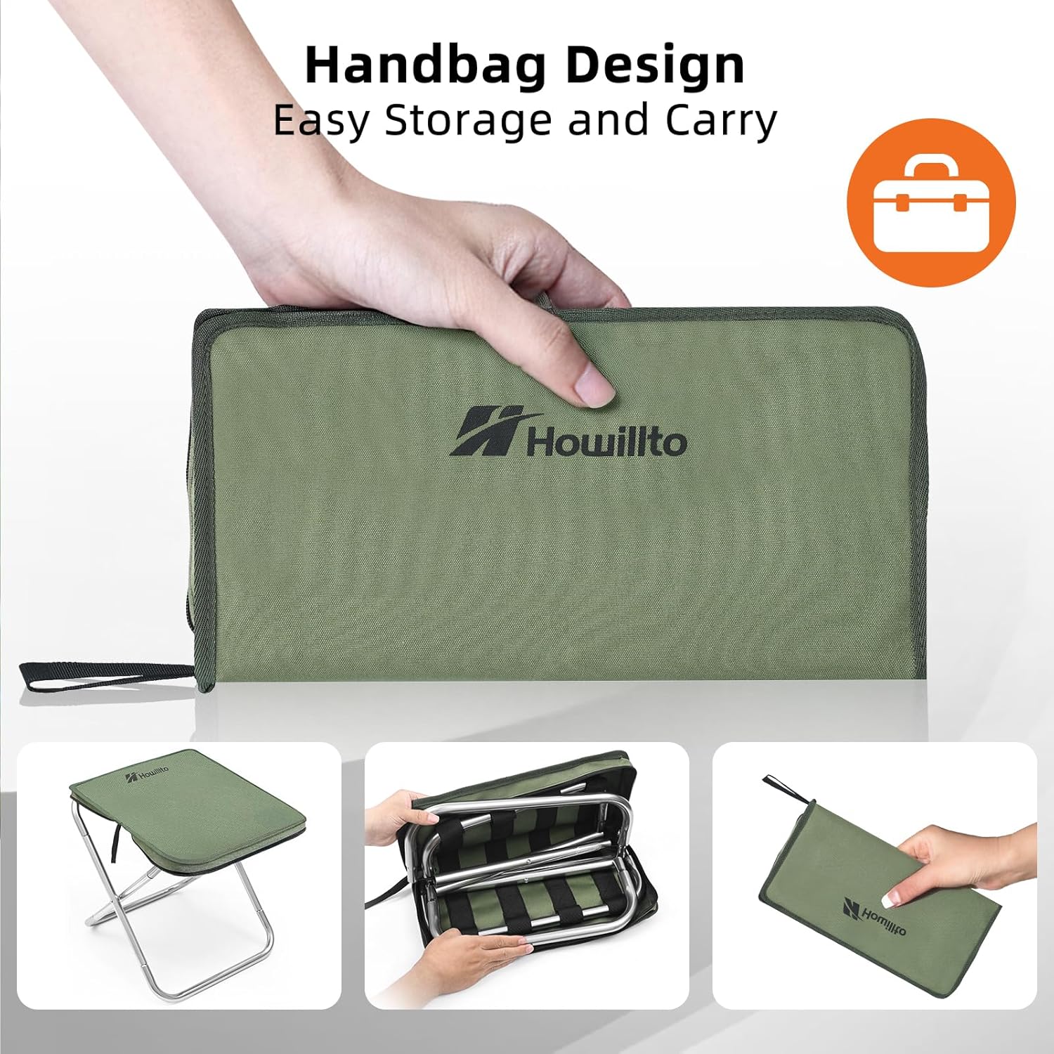 Camping Stool, 16in Tall Portable Folding Stool with Carry Bag, Upgraded Ultralight Chair with Roomy Seat for Adults, Holds 280lbs, Ideal for Hiking, Fishing, Outdoor Use, Green