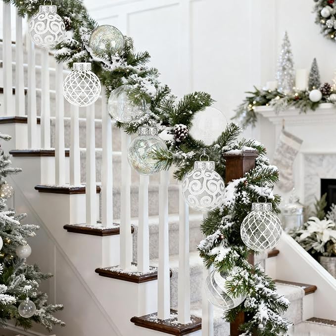 - Superior Materials: White christmas ornaments are made of high-quality plastic, ensuring a glass like transparency while being shatter resistant and lightweight; Not easily damaged and can be used for a long time, making it an ideal Christmas decor