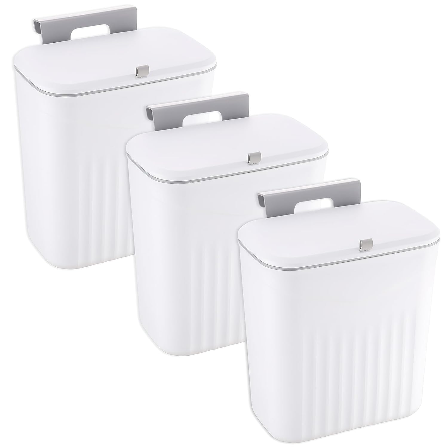 3 Pack Hanging Trash Can with Lid, Kitchen Compost Bin for Counter Top or Under Sink, Waste Basket Wall Mounted Garbage Can for Cupboard/Bathroom/Bedroom/Office/Camping (White)