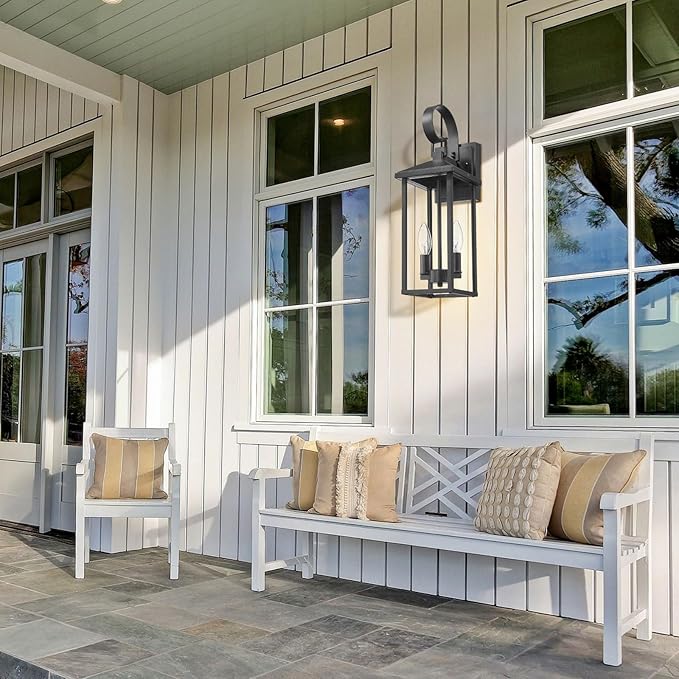 Porch Lights Outdoor Wall Light Fixtures Wall Mount, Modern Exterior Lighting Fixtures with Clear Glass Waterproof, 2-Light E12 Sockets Outside Garage Lights for House Patio Porch