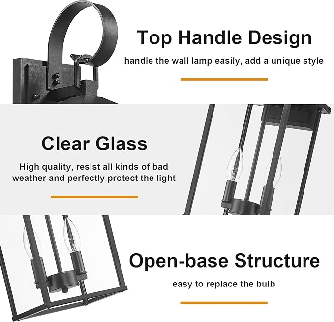 - 【Anti-Rust & Weather Resistance】Our Starcurin large black outdoor wall light is a sturdy aluminum frame and thickened clear glass panels. It not only has excellent anti-rust and waterproof properties, but also can withstand harsh weather conditions.