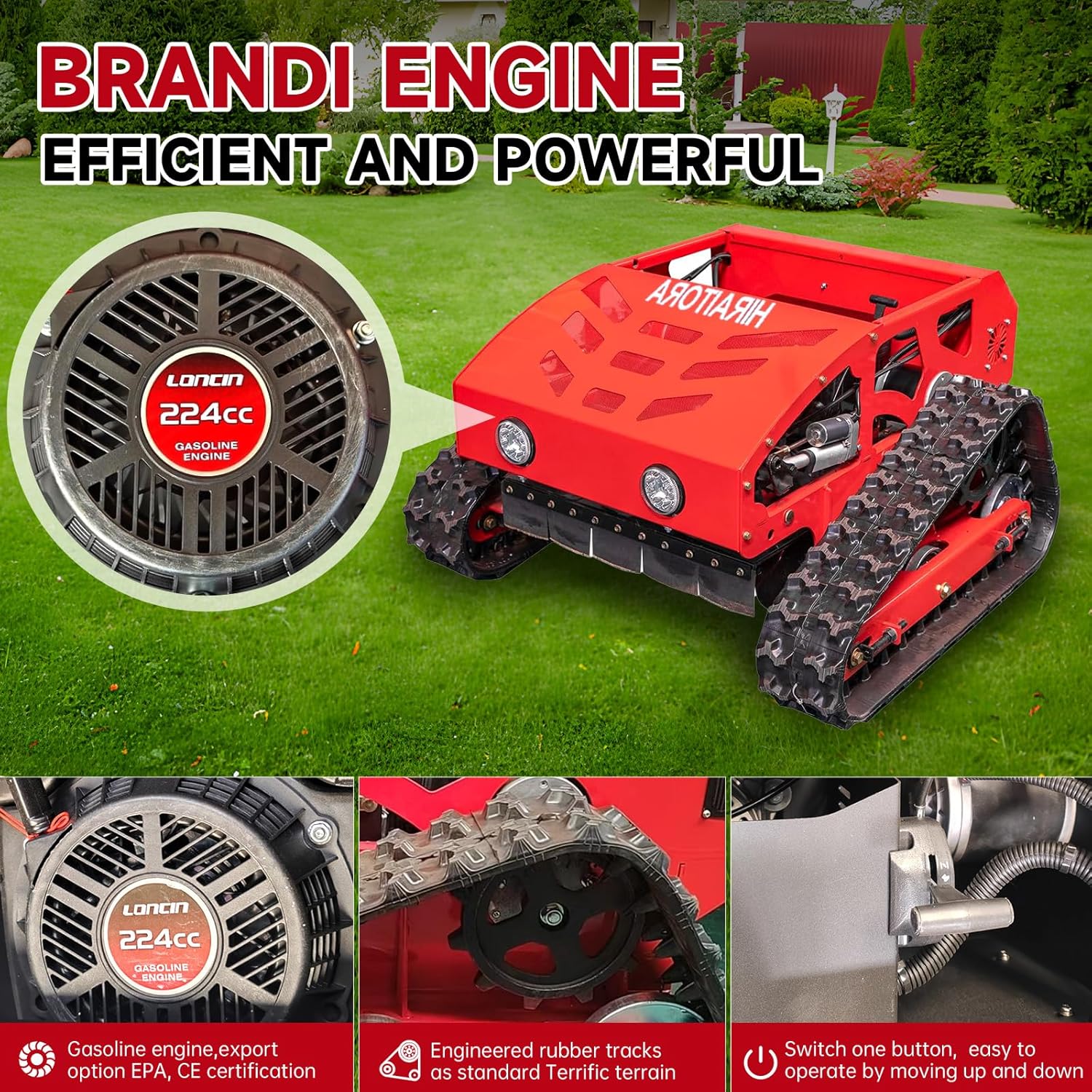 - Convenient Remote Control: Effortlessly start, stop, and steer your mower from a distance using the intuitive remote control, giving you ultimate convenience and flexibility.