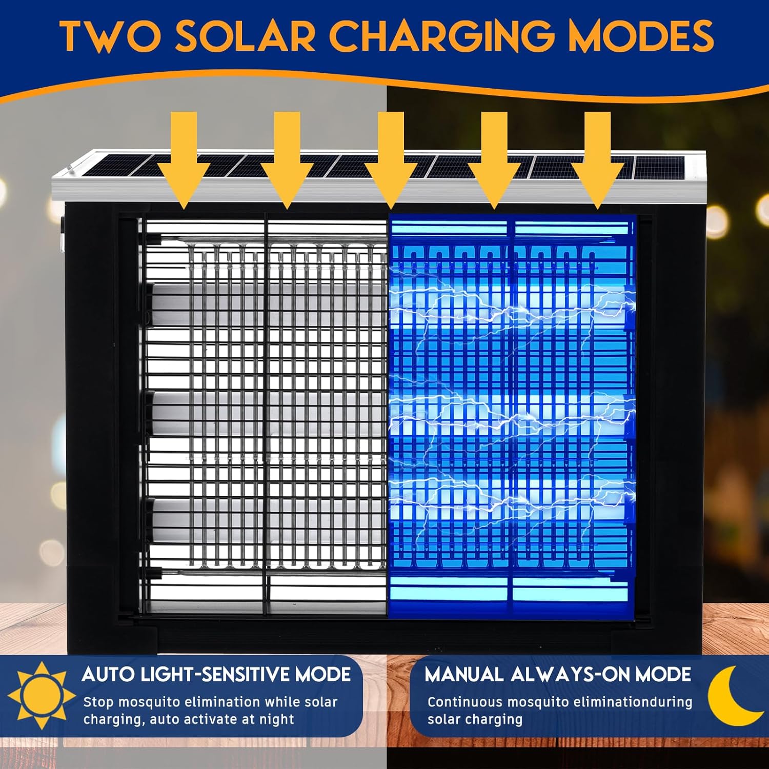 - Easy to Use and Low Maintenance: the solar powered mosquito zapper operates with ease and minimal maintenance; It includes 2 grounding brackets, allowing for easy installation in grassy areas; Alternatively, it can be hung from any hook or placed on a countertop; With its sturdy plastic structure and IPX6 waterproof design, it can endure wind, rain, and prevent rusting, ensuring a longer lifespan