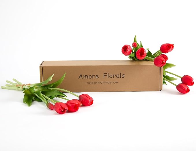 - 🌷Ultra-Realistic Real Touch Flowers Design-- Crafted from premium soft latex with weighted stems, Amore Florals faux tulips real touch mimic nature's texture - gently spray water to create dewdrops on petals. More lifelike than flimsy silk or PU artificial flowers that yellow over time.