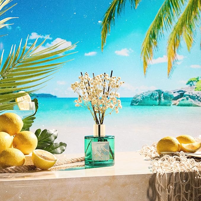 COCORRÍNA Reed Diffuser - Hawaii Melody 6.7 Fl.oz Reed Diffuser Set with 8 Sticks & Preserved Baby's Breath, Reed Diffuser for Home Bathroom Shelf Decor