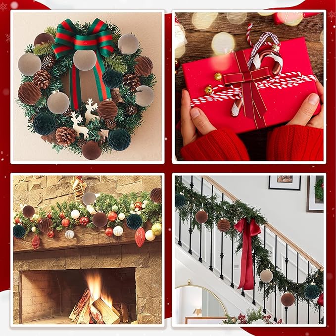 - Versatile Decorations in Classic Christmas Colors - Festiva’s velvet ornaments are more than just tree decorations. With classic Christmas hues like Neutral, Brown,green, they’re perfect for adorning wreaths, garlands, mantels, and more. Add them to your festive displays to create a cohesive and beautifully coordinated holiday look throughout your home