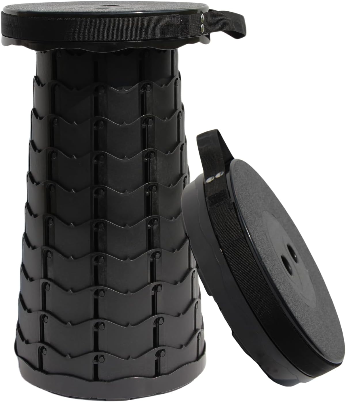 ALEVMOOM Upgraded Nylon Collapsible Stool with 500lbs Max Weight Portable Retractable Folding Telescoping Stools for Adults Chair for Outdoor Camping Fishing Hiking BBQ(Nylon Black)