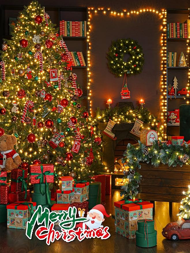- Upgraded Warm White Solar String Lights on Green Wire: The solar Christmas lights are upgraded in 2025 with brighter LED and higher charging efficiency solar panel. Each string is 100 LEDs with a length of 39ft (33FT plus 6FT leading wire. Total 6pcs per set (198 FT and 600 LEDs)