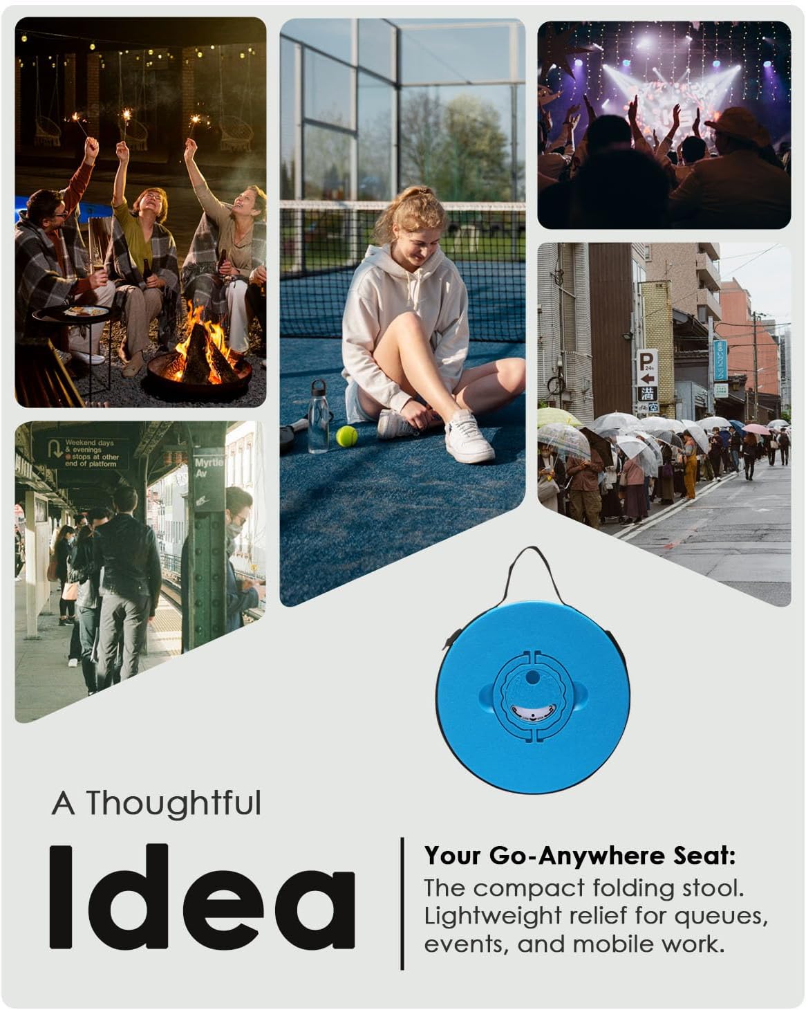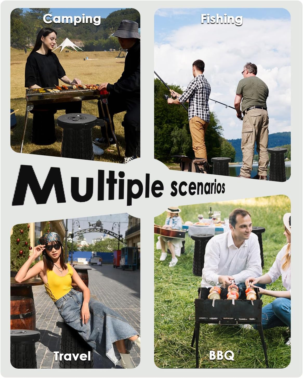 - MULTI-SCENARIO PORTABLE STOOL FOR ADULTS β Ideal collapsible stools for adults at camping trips, sports events, concerts, long queues, garden parties, RV travels, and as an temporary seat.
