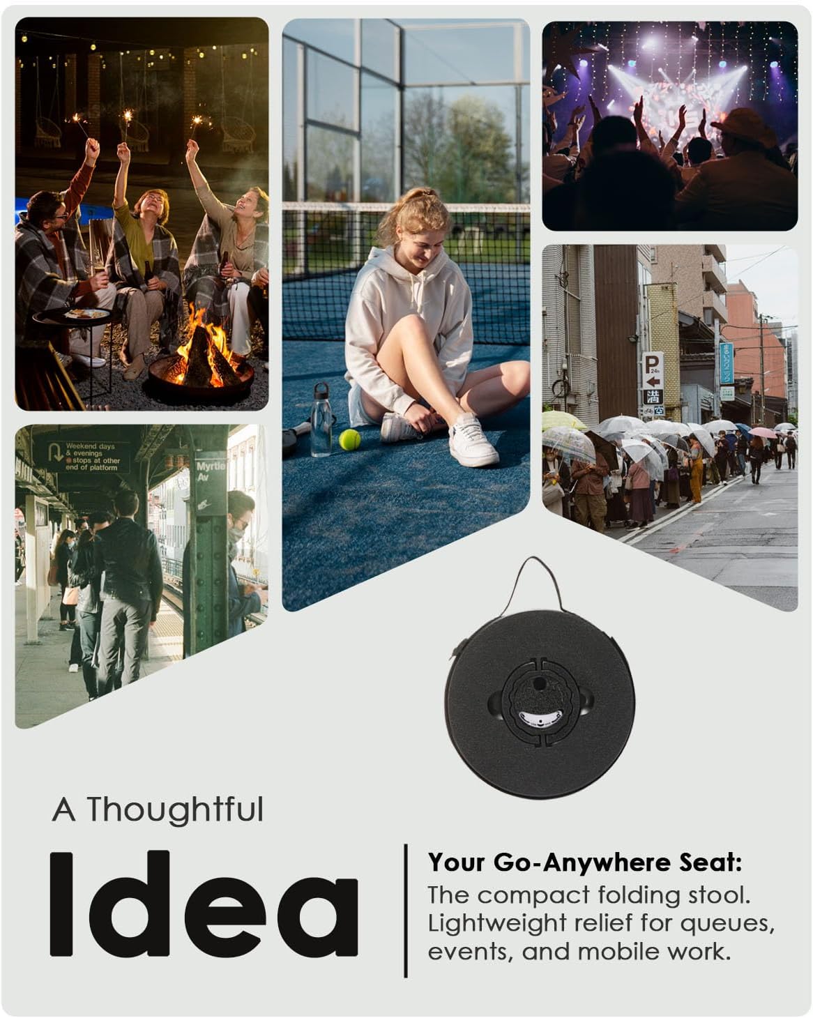 - MULTI-SCENARIO PORTABLE STOOL FOR ADULTS β Ideal collapsible stools for adults at camping trips, sports events, concerts, long queues, garden parties, RV travels, and as an temporary seat.