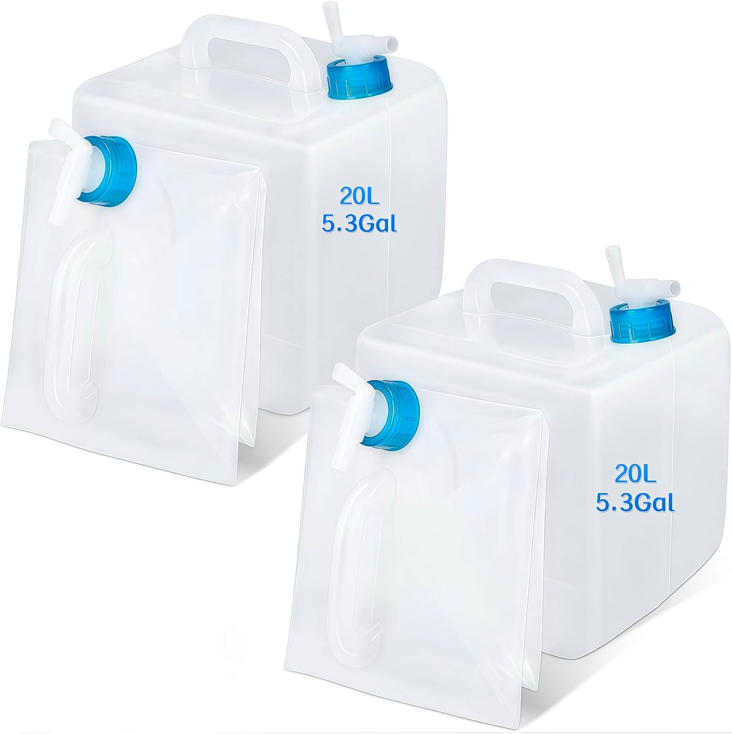 2 Packs of Collapsible Water containers, 5.3 gallons, with Faucet, Camping Water Storage Tank, for Outdoor Hiking, Collapsible Portable Kettle.