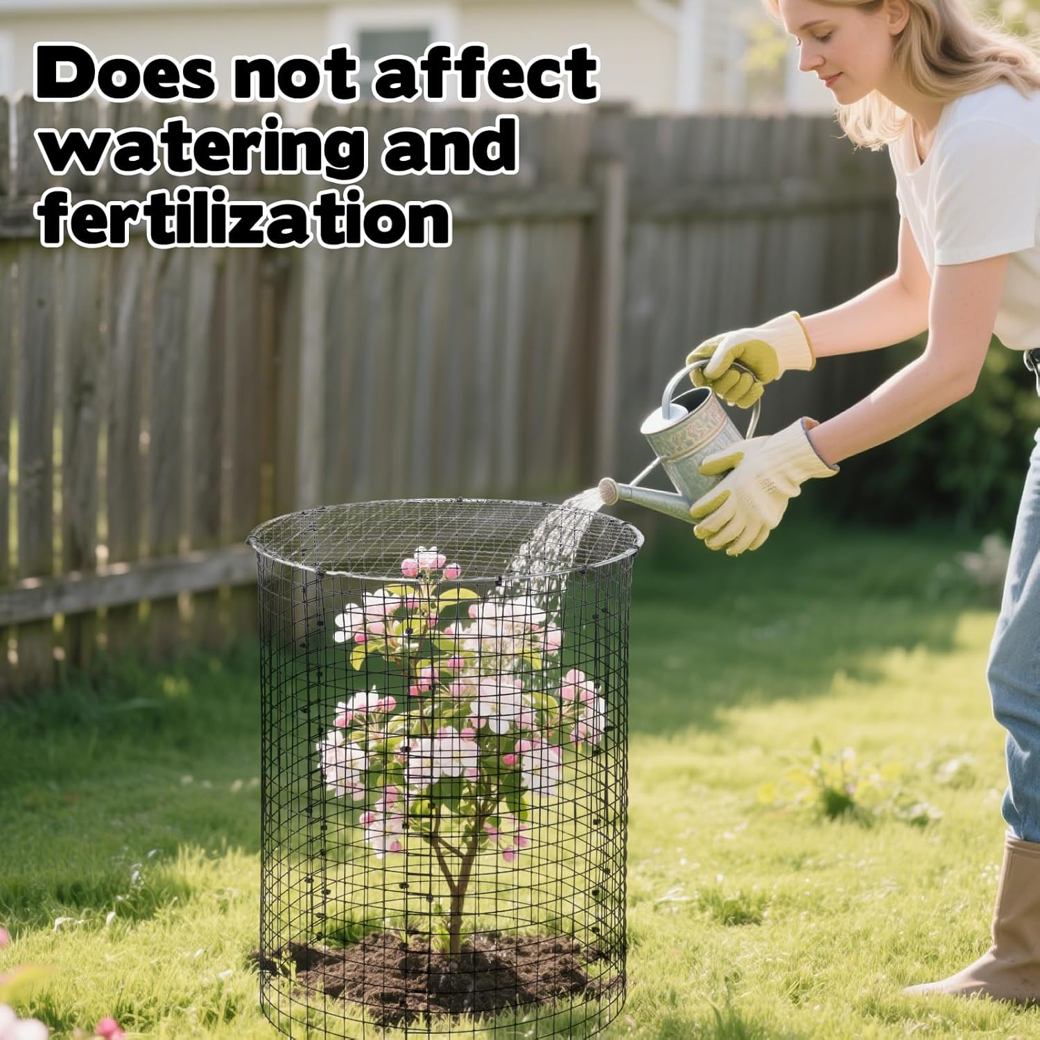 - Removable Protective Cover Design: our upgraded wire plant protection cage each added a removable metal cover to avoid large animals can destroy plants from the top, played a double protection effect, smaller plants can be better protected, if the plant grows to a certain height, but also can be removed at any time the top cover can be removed, very convenient and quick!