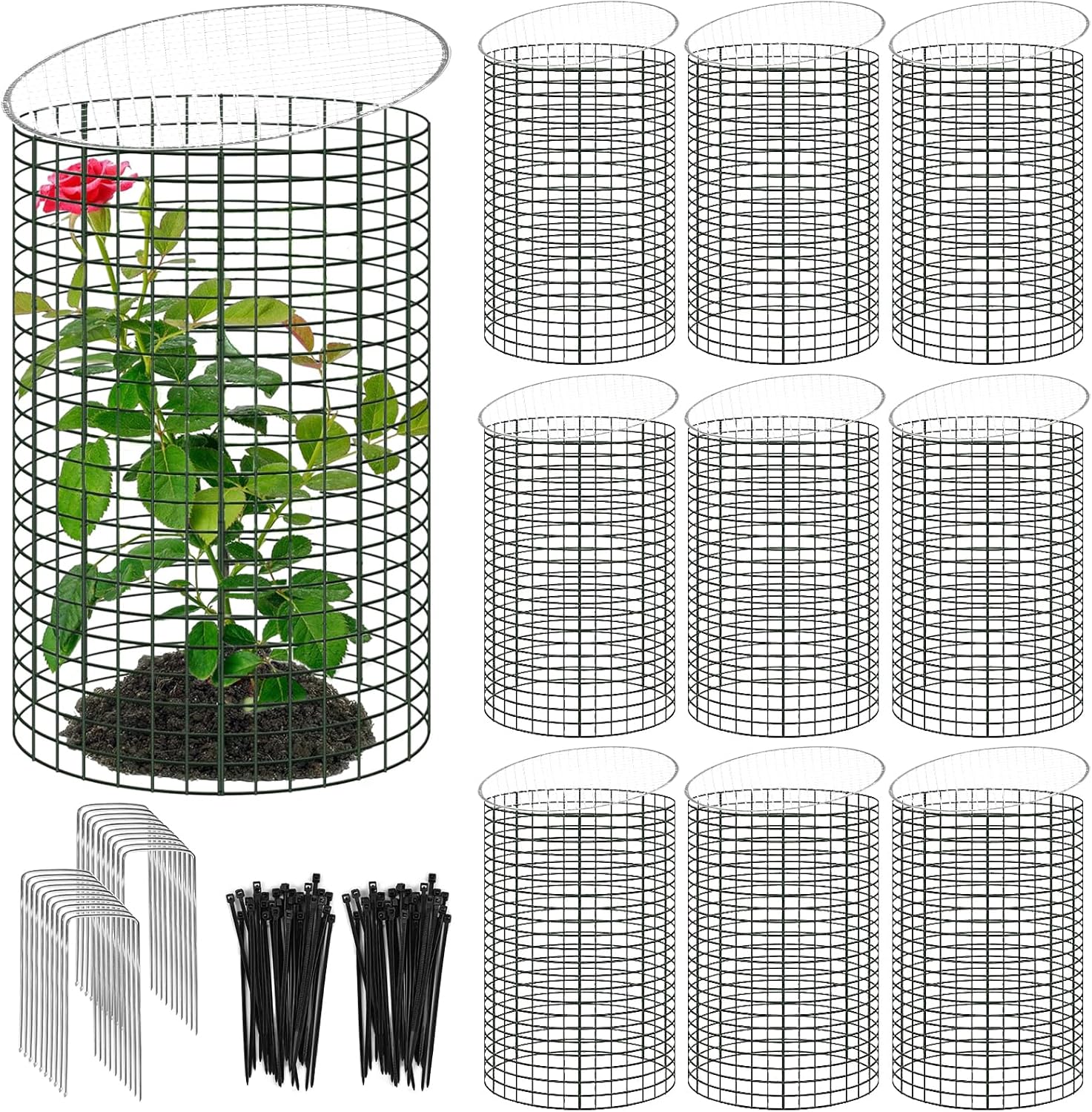- What You Will Get: Package include 30 square metal plant protection mesh,10pcs metal detachable covers,30 fixing stakes and 300 black strapping straps, you will get enough value for money, with enough quantity for your daily use and replacement, saving you time and money on buying again. Our metal garden protection cage will effectively protect your plants from critters and provide a safe space for your plants to grow.
