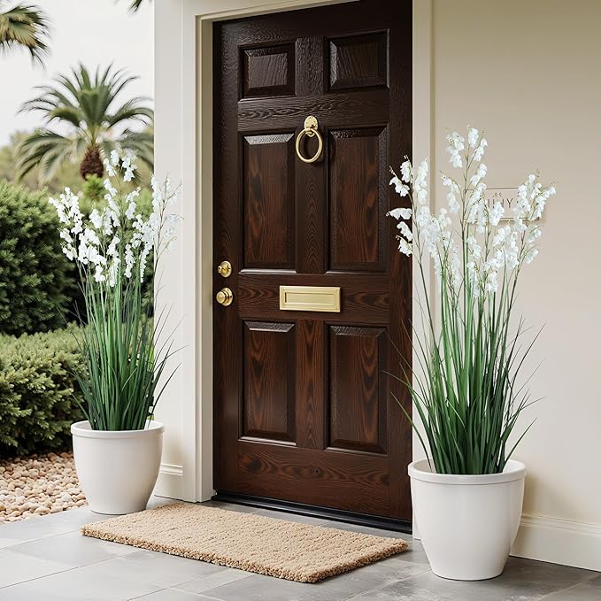- Lifelike Design Details: This artificial plant stands out with its meticulous craftsmanship. The 47-inch height of these tall fake plants is perfectly proportioned, mimicking the natural growth of real grass. The PVC leaves and silk petals work together to create a texture that’s hard to distinguish from live foliage. As an artificial grass plant, it features leaves that sway gently with the breeze, adding a dynamic touch. These faux plants, bring a sense of authenticity to any space.