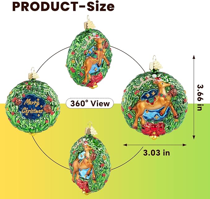 Reindeer Christmas Tree Ornaments,Blown Glass Christmas Ornaments, Wreath Collection Hanging Ornaments,Glass Home Decorations for Animal Lovers Holiday Party Daily Gifts