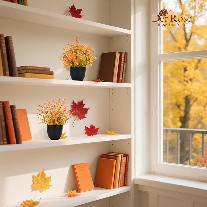 - Autumn Decor: Whether it is fall bedroom living room shelf office table decor, Der Rose artificial plants are your best choice, the exquisite and small decoration makes you feel the chic of life