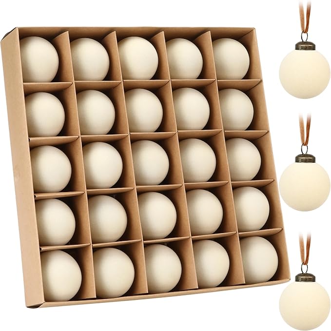 - 25-Pack Easy to Hang Ornaments - The bulk package contains 25pcs 60mm/2.36-inch ball ornaments with prepared velvet ribbons, providing you with plenty of ornaments to quickly build a stunning holiday collection. You'll have more than enough to decorate your home, office, school, church, or shop