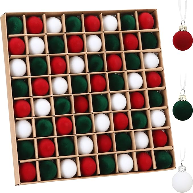 - Elegant Look - Inspired by a cute elf, the flocked velvet ball ornaments come with a green, red, and white color scheme and feature a soft, matte, and slightly rough surface to provide a peaceful, elegant and warm look