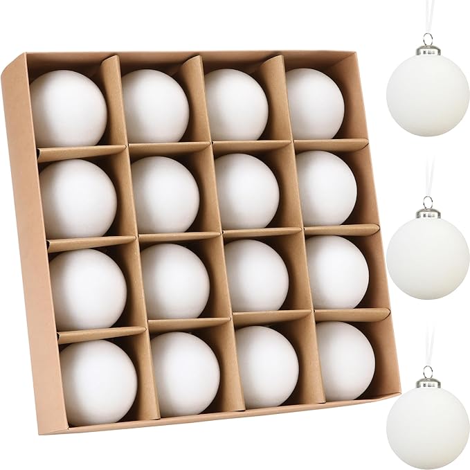 - Elegant Look - The flocked velvet ball ornaments come with a white color scheme and feature a soft, matte, and slightly rough surface to provide a peaceful, elegant and warm look