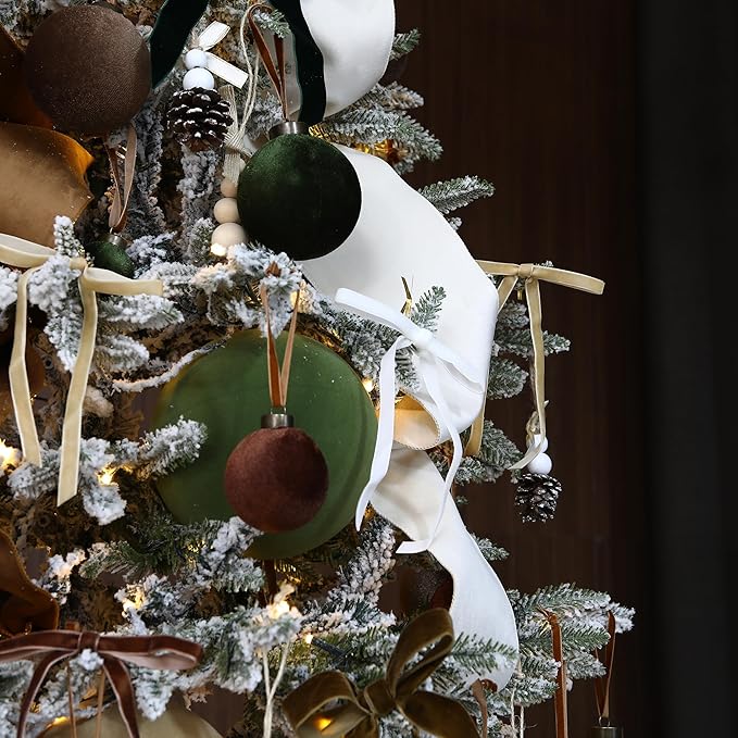 - Elegant Look - The flocked velvet ball ornaments come with an olive green color scheme and feature a soft, matte, and slightly rough surface to provide a peaceful, elegant and warm look