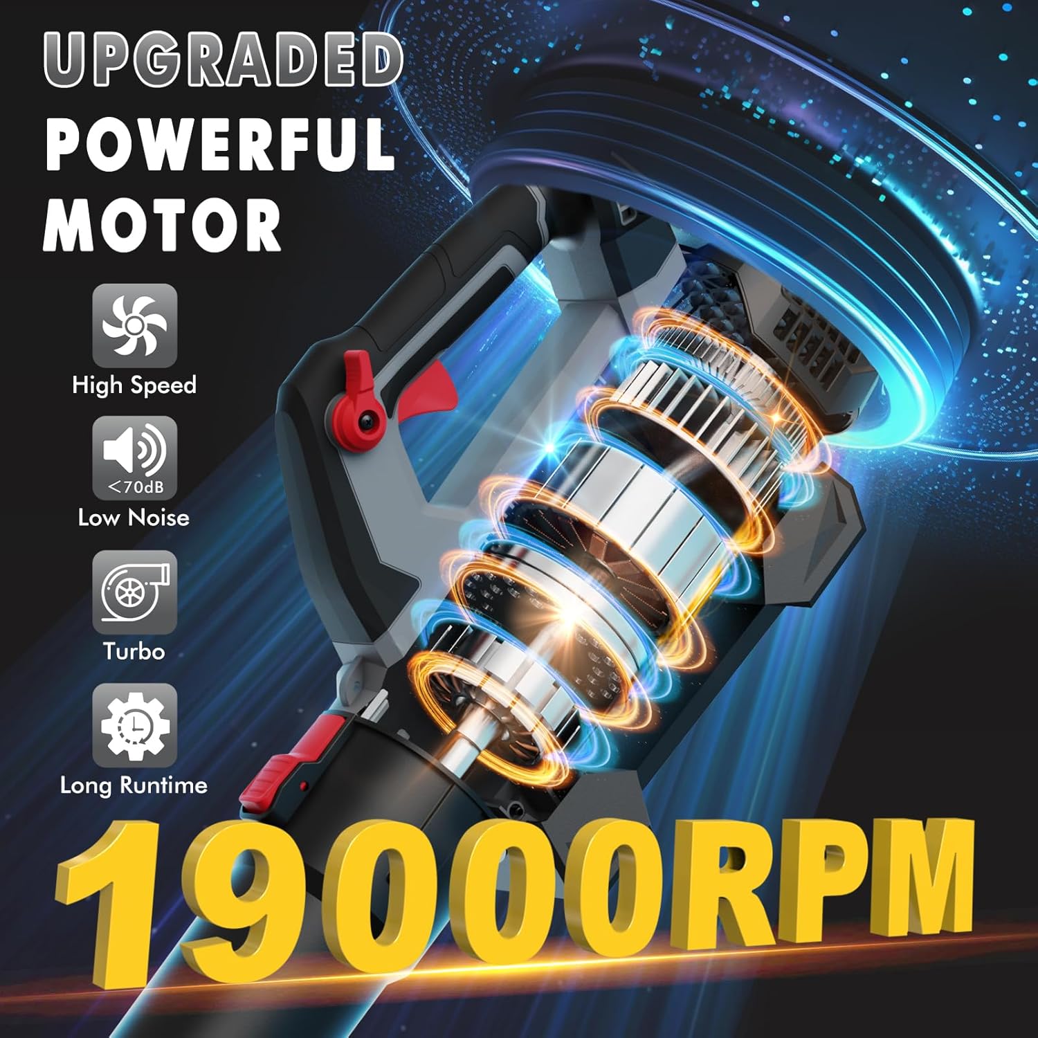 - Excellent Blowing Performance - The 19000 RPM upgraded motor and the mesh air intake design make this electric leaf blower achieve an impressive airflow volume of 630 CFM and a high wind speed of 160 MPH. It can easily clear leaves, snow, and dust, complete large-area cleaning tasks quickly and efficiently. The unique adjustable constant-speed knob can keep the leaf blower working continuously without the need to constantly press the switch with fingers, thus avoiding finger fatigue