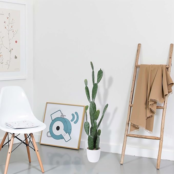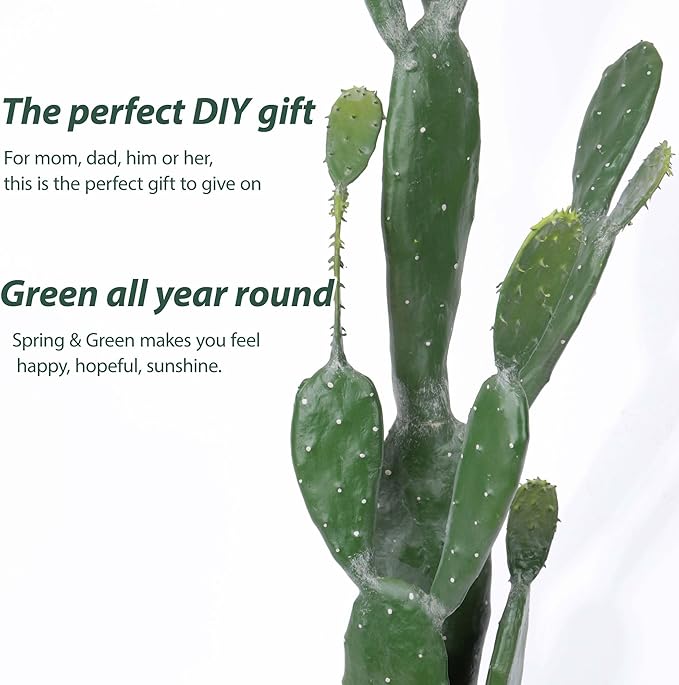 - [Specifications]: This artificial cactus is 42inches tall, potted inside a round plastic black pot. Based on soft colors, it is natural and fresh, and the appearance is very close to the real cactus. It is almost impossible to distinguish the authenticity from a distance. The details are also realistic when viewed up close. It is natural and environmentally friendly, creating a sunny atmosphere.