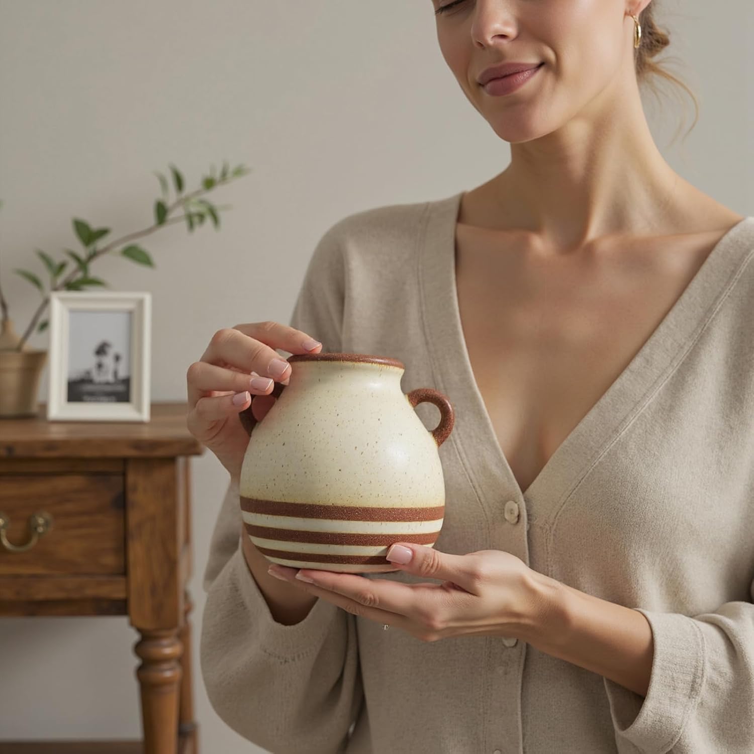 - 【CRAFTED FROM PREMIUM QUALITY CERAMIC】 You will be amazed by the craftsmanship of this farmhouse rustic vases for home decor, which are handcrafted by skilled artisans and fired at temperatures up to 1300 degrees to ensure long-lasting durability. This chic vase will complement your home decor, and its scratch-resistant base will ensure your furniture will remain beautiful for years to come.