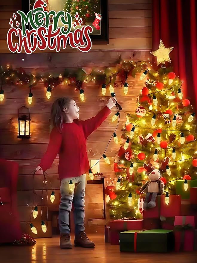- Extendable & Safer Design: These C9 Christmas string lights are equipped with a 29V low-voltage plug and are ETL certified for safe use. You can connect and extend up to 4 sets together, making them ideal for decorating larger outdoor spaces or wide areas. Plus, the 10 ft leading wire provides added flexibility for outdoor setup and placement