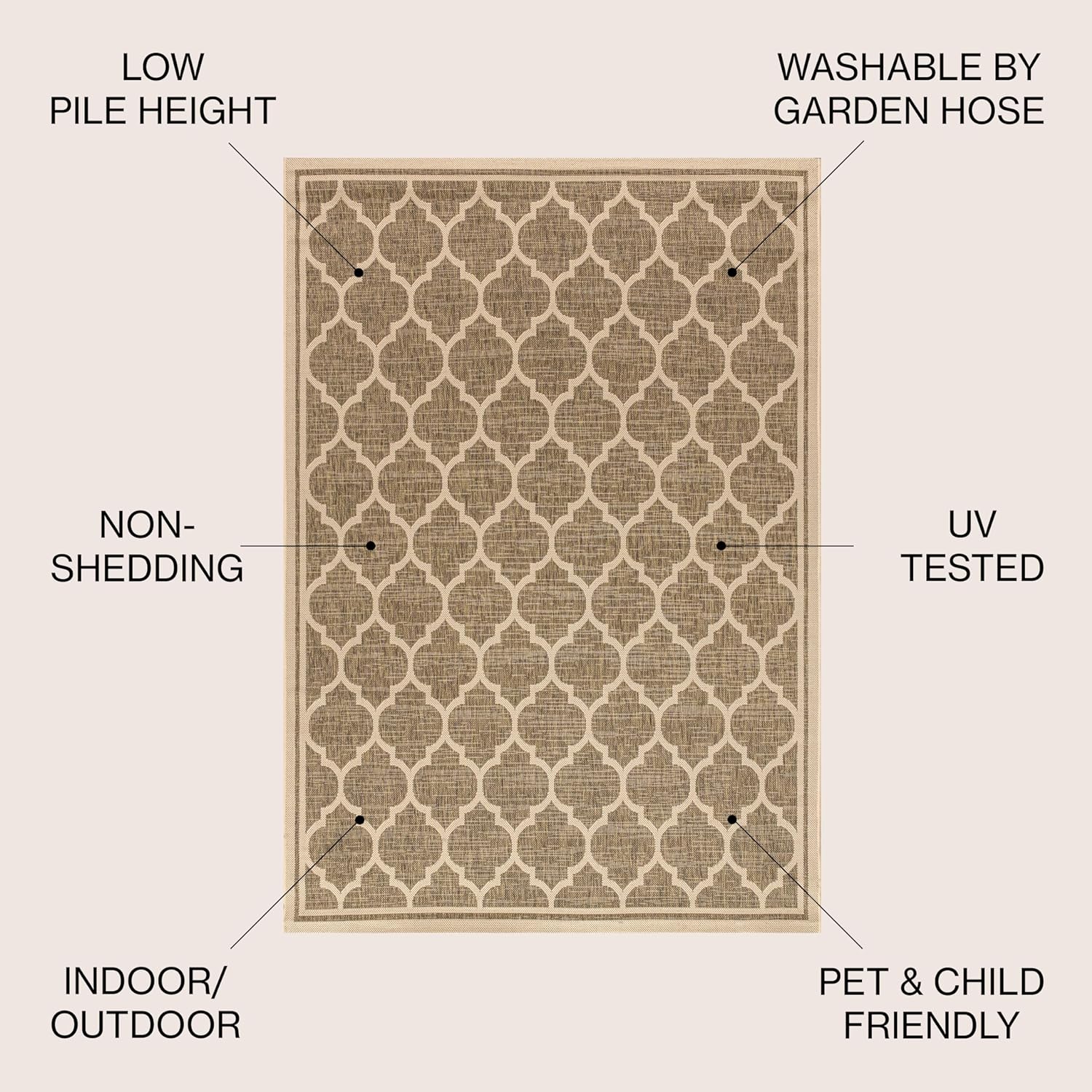 - STAIN-RESISTANT AND NON-SHEDDING: Power Loomed in Türkiye Made from easy-care polypropylene - just sweep, vacuum or hose down with mild soap and water Which makes this rug water resistant, stain resistant; When properly cared for, this rug won’t shed fluff into your home