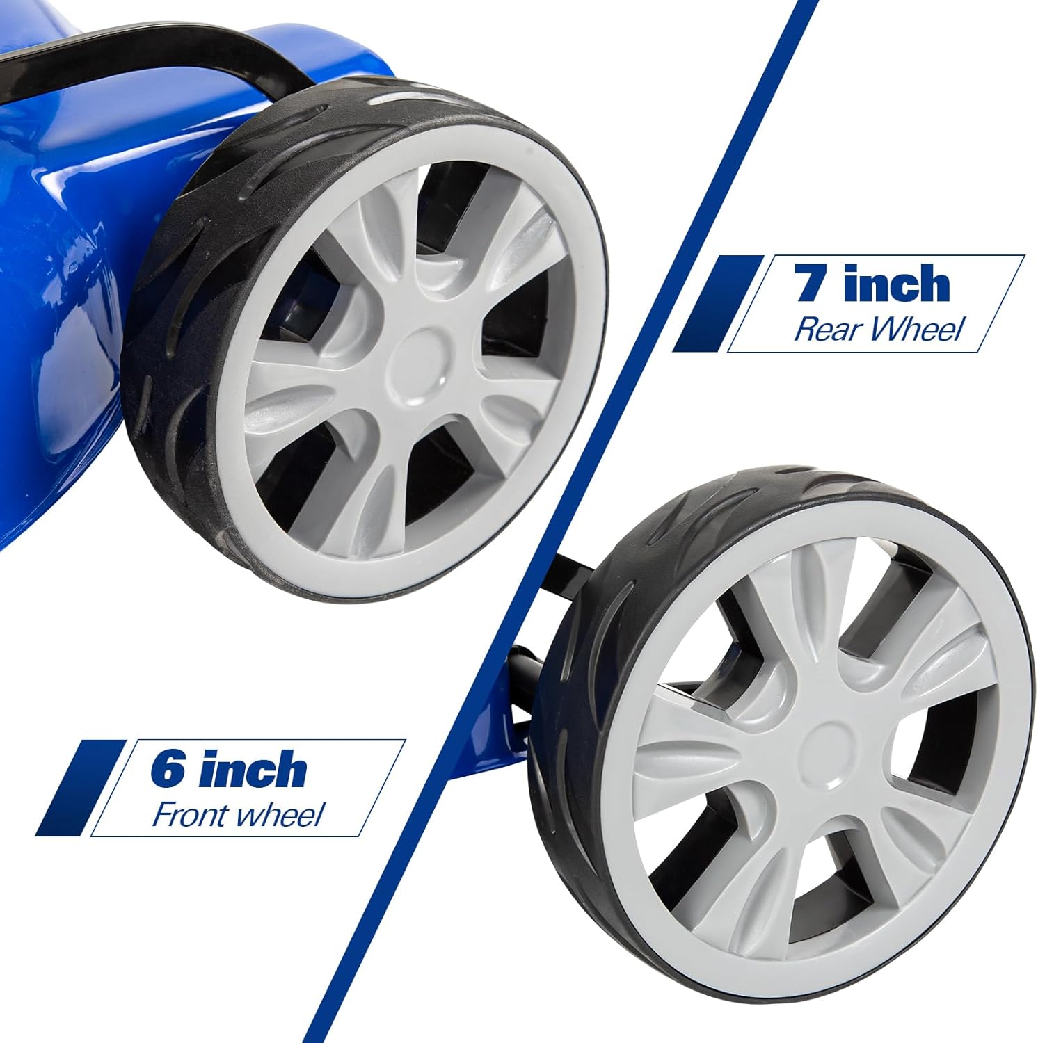 - Superior Maneuverability & Comfort: Glide effortlessly with 7" rear / 6" front double ball-bearing wheels. The ergonomic, foam-wrapped angled grip on this lawn mower reduces fatigue during extended operation.