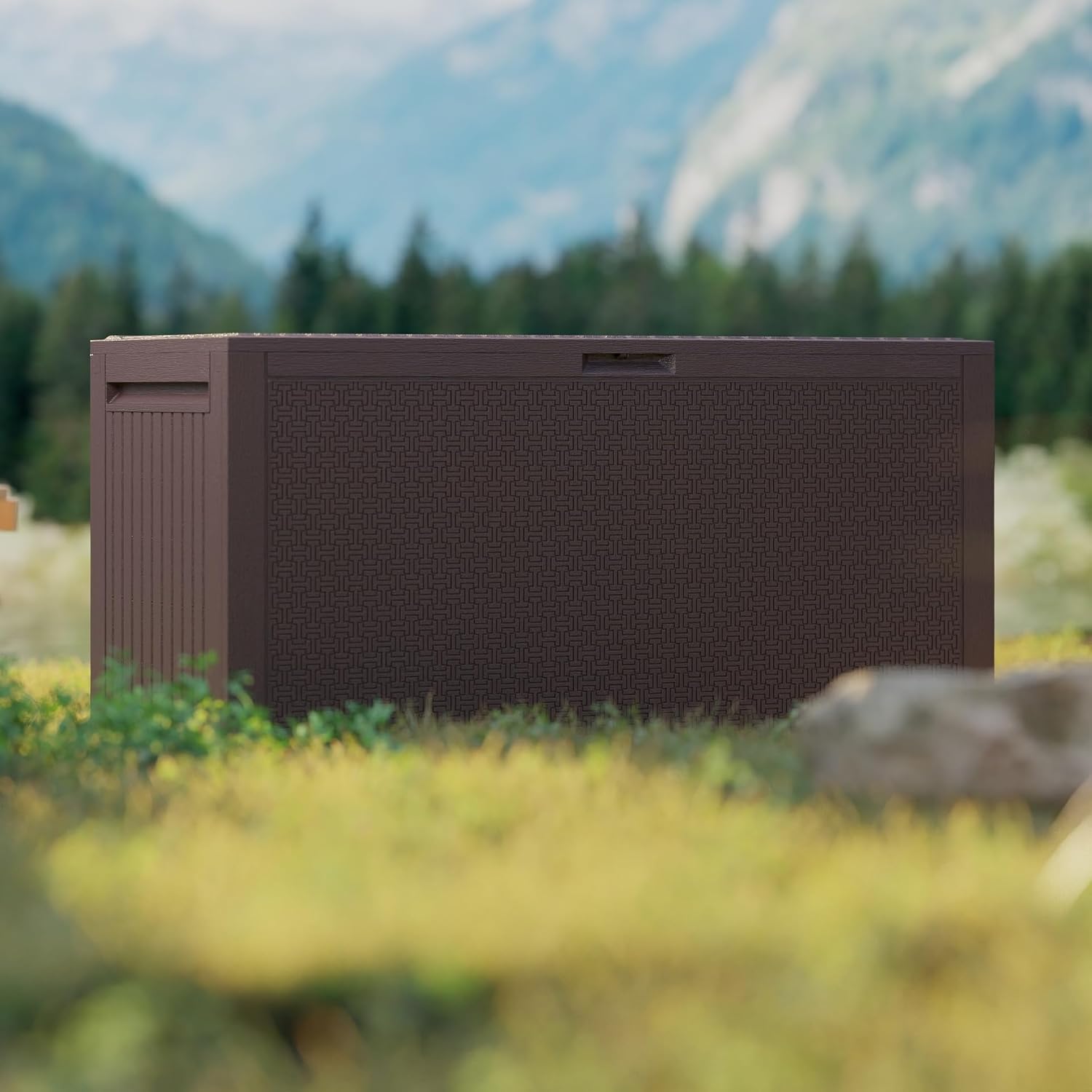 - Rattan-Style Design: Our deck box combines the appeal of Rattan with the durability of resin, providing an elegant and long-lasting storage solution for your outdoor space.