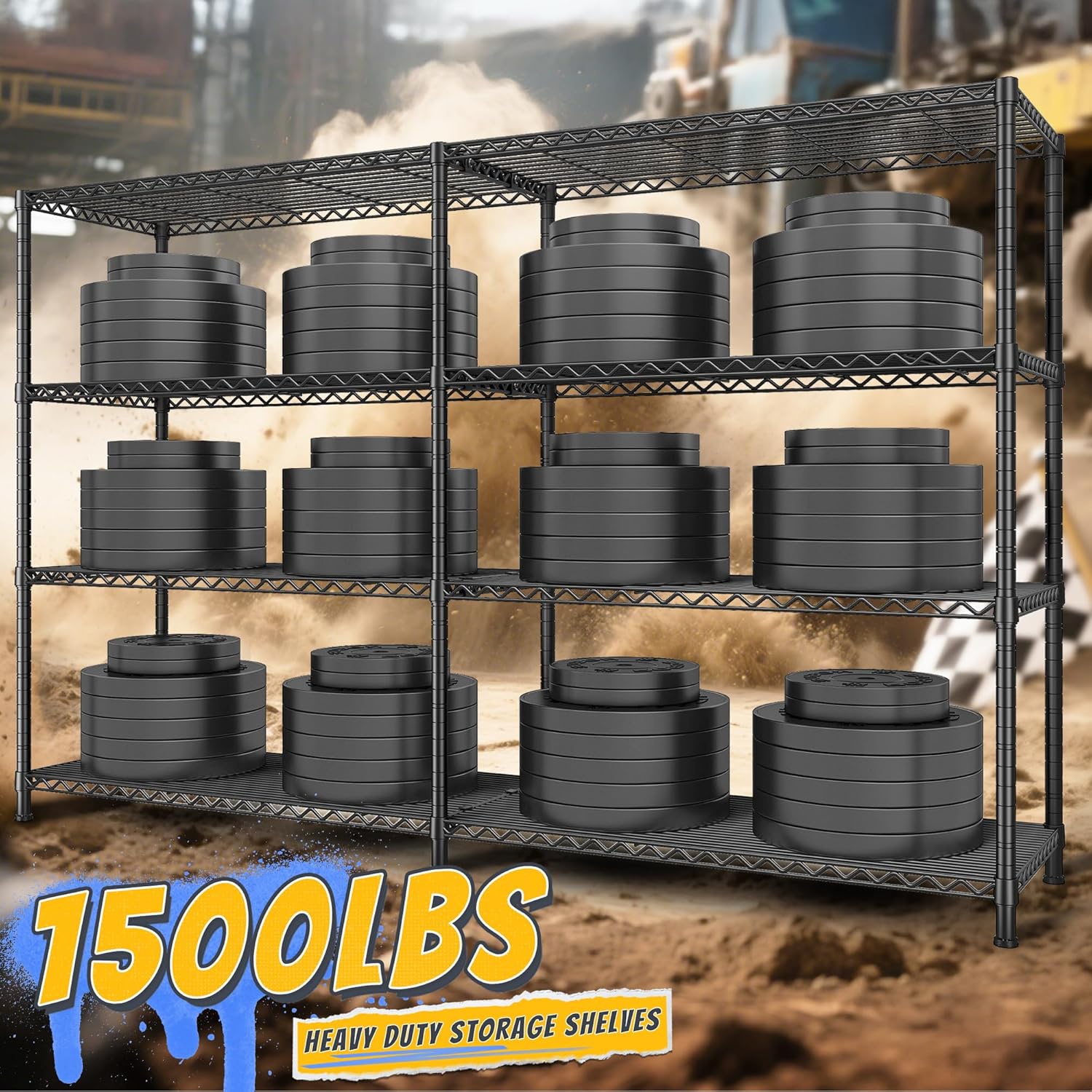 - 【1500 LBS Capacity Super Sturdy Storage Rack】Crafted from heavy-duty metal wire panels and 19mm diameter metal rods, featuring sturdy carbon steel construction and reinforced dual-layer design, each panel is reinforced at the bottom for extra strength. This heavy duty shelving unit can effortlessly hold up to 1500LBS each shelf. Not only suitable for home but also suitable for industrial grade use. It can also function as a garage shelving heavy duty, delivering the quality you expect