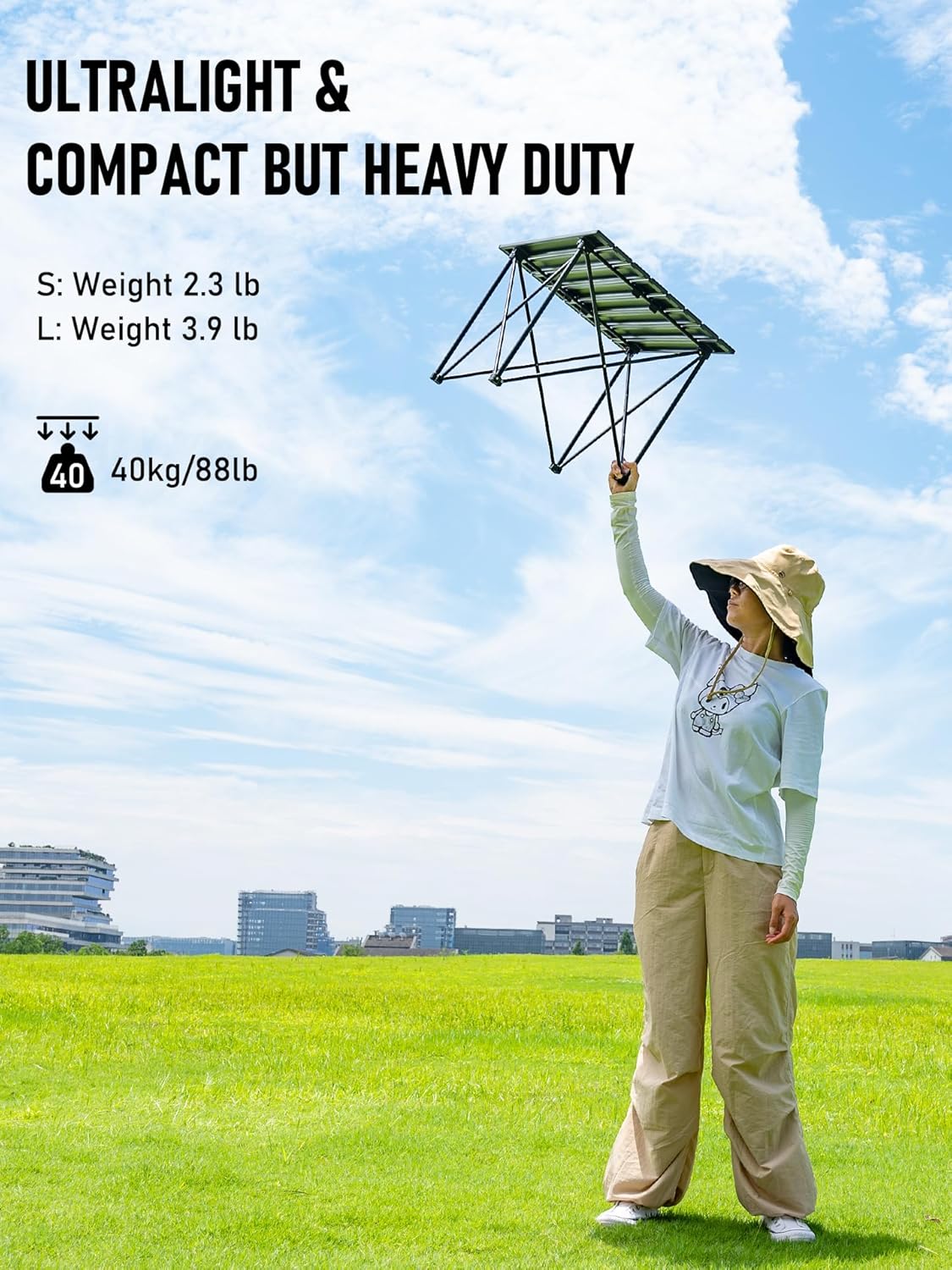 - Ultralight & Compact But Heavy Duty – Made from Aerospace-grade Aluminum Alloy, it weighs just 2.3 lbs but supports up to 88 lbs. Packs down to 16.5 × 5.5 × 2.76 inches. Includes a convenient carry bag for easy transport and storage