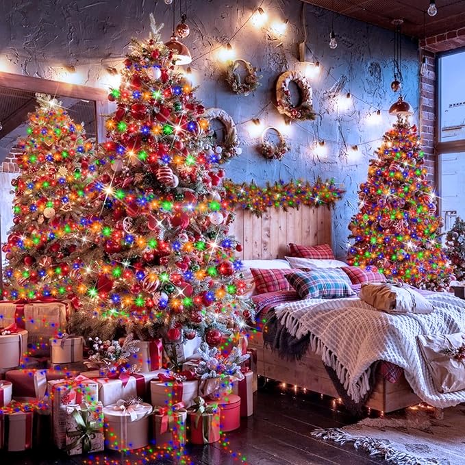 - Dimmable Christmas Lights:Set the perfect mood with four distinct brightness levels. A gentle 25% creates a snug, intimate atmosphere ideal for peaceful moments and cozy evenings. Move to a welcoming 50% for everyday comfort and relaxed gatherings. Increase to a lively 75% to energize your space for activities or to subtly highlight decorative features. And when you need to make a statement, or crank it up to a brilliant 100% to ensure your holiday displays shine with maximum impact.