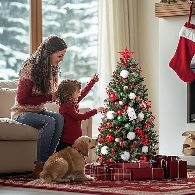 - [Realistic Appearance]Featuring individually crafted branch 107 tips to create full bodied branches, this tree is designed to look and feel lifelike.The small christmas tree with lights contructed with sturdy, materials,fire-resistant PE branches,which Make your Christmas decoration safe.