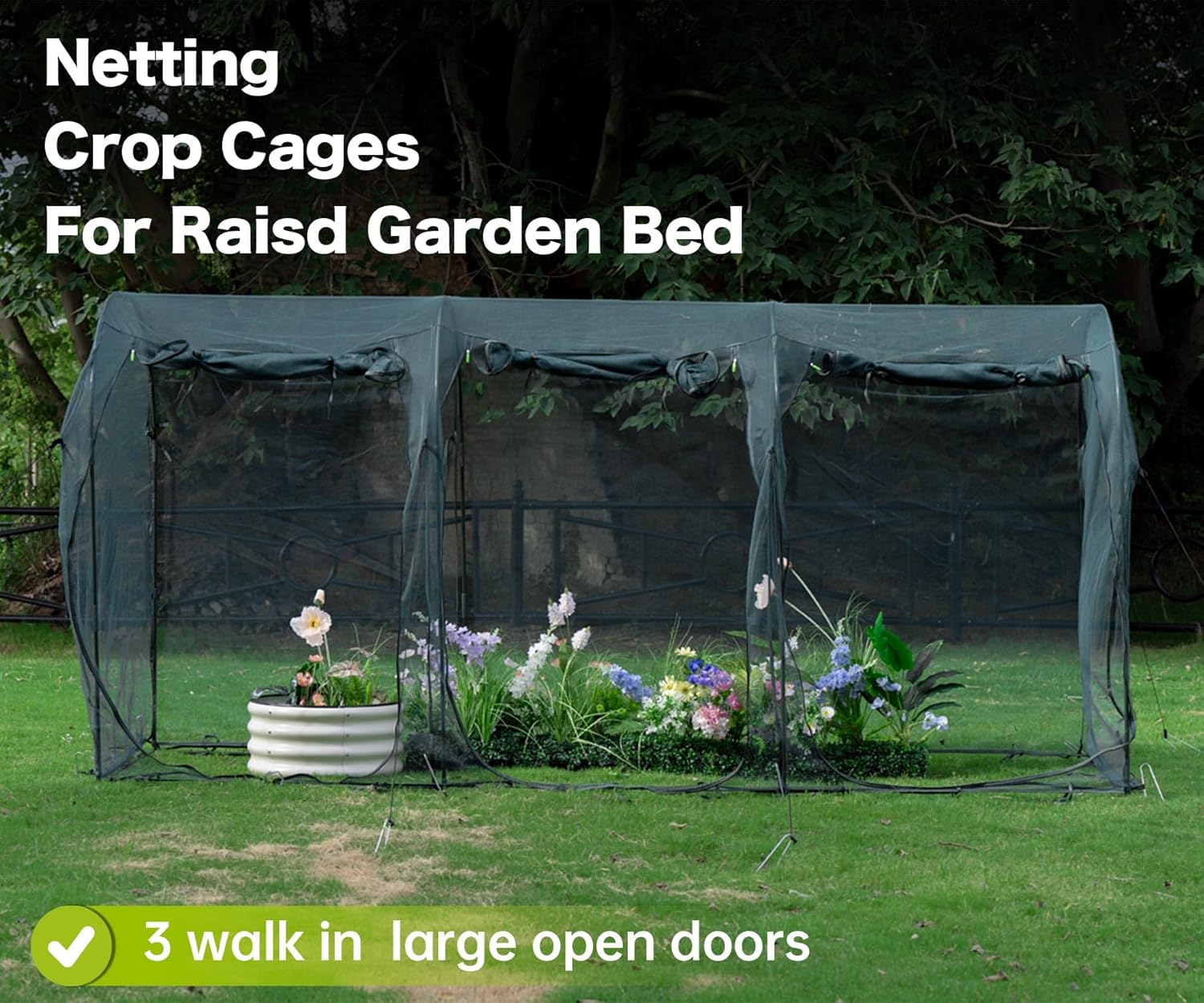 - Spacious Crop Cages- Our ultra long tunnel crop cage measures 12.3 feet in length and 4.1 feet in width, with height options of 4.1 feet or 6 feet. the weight is around 16 pounds,easy to carry and portable,designed to cover large raised beds