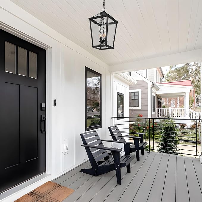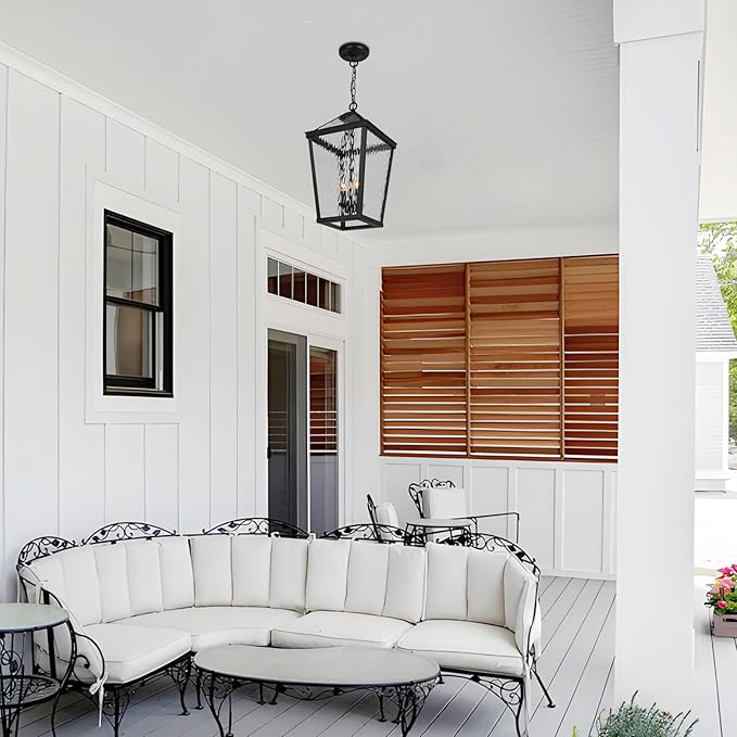 - Classic Outdoor Pendant Light: Transform your outdoor living space with this elegant outdoor hanging lantern light fixture, designed with a timeless black finish and water ripple glass that creates a soft, inviting glow.Perfect for front porches, patios, entryways, or gazebos, it adds both charm and functional illumination.
