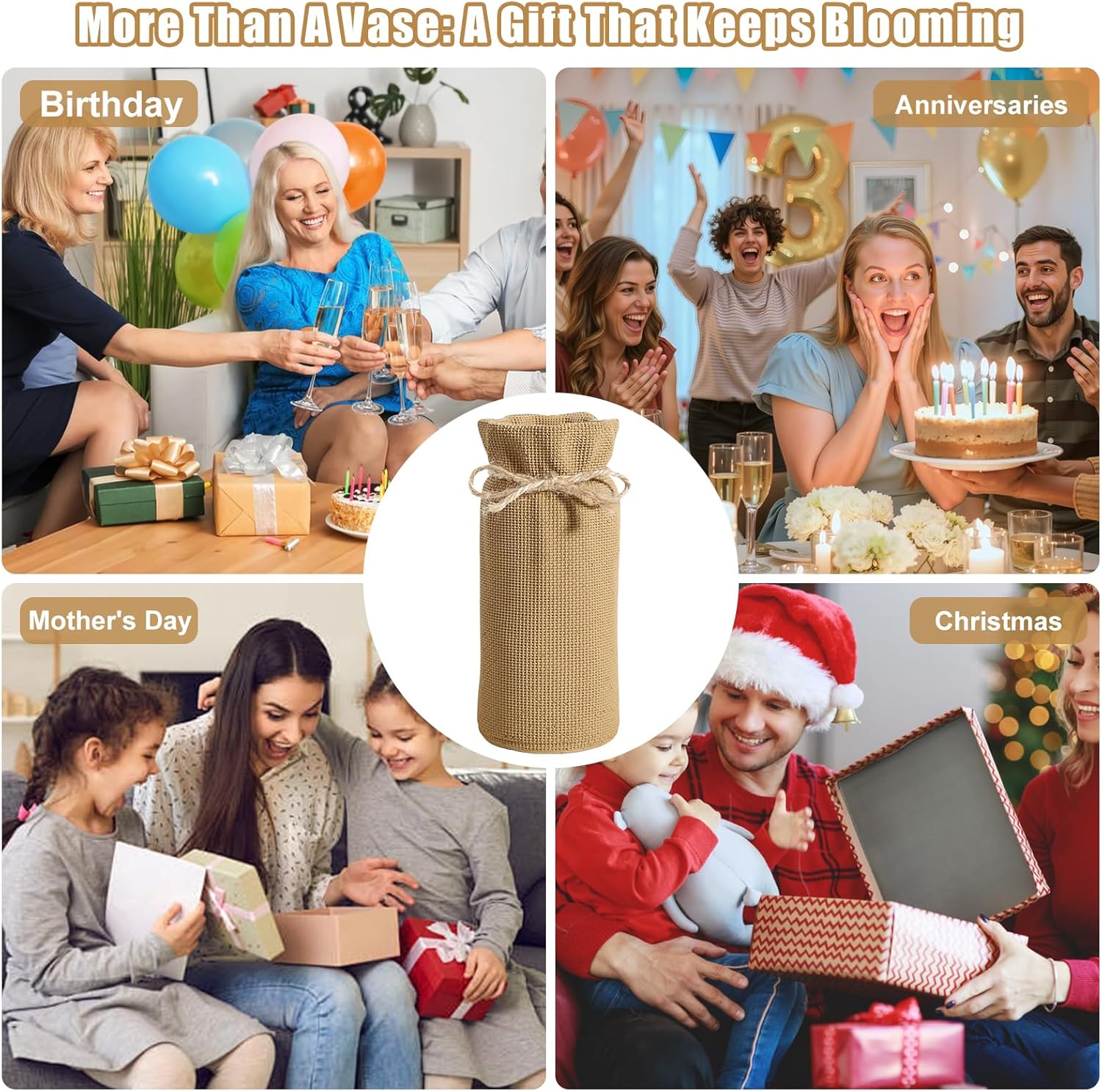 - [Durable Resin Construction] Made from high - quality resin, it’s sturdy and long - lasting. Unlike real burlap, it won’t fray or wear out, maintaining its shape and texture. Resistant to water damage, so it’s safe for holding fresh blooms.