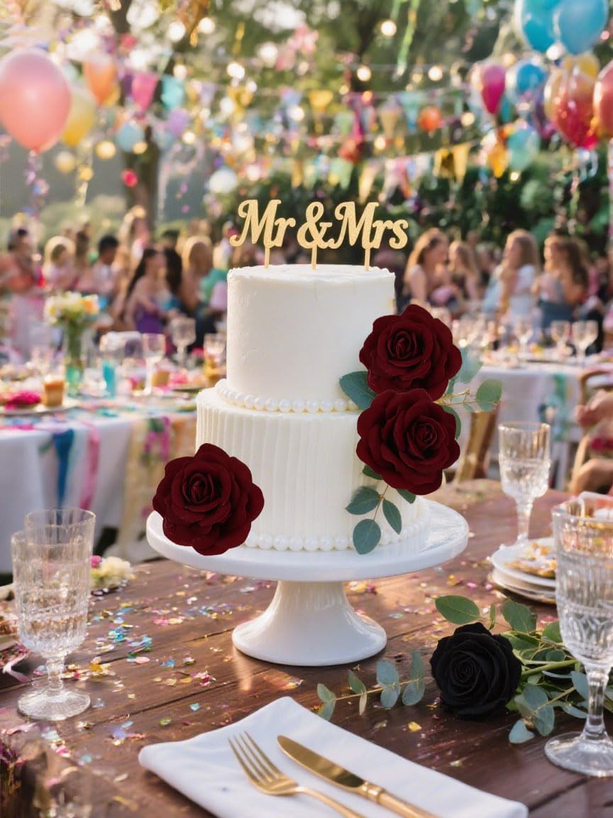 - The Material Of The Rose Head: The artificial burgundy rose flower head is handcrafted and made of durable and soft velvet material. It has a bright color and imitates the edges of real rose petals, looking natural and beautiful