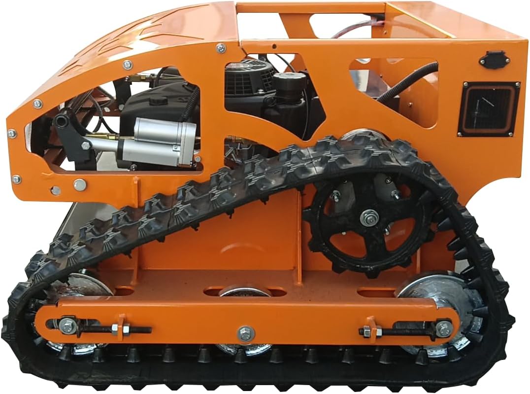 - 【45° slope for Tracked】:The 45-degree tilt capability allows the mower to operate efficiently on steep slopes, ensuring better coverage of hilly or uneven terrain. Tracks provide greater surface contact with the ground, and at a 45° incline, they offer better grip and balance compared to wheels, reducing the risk of slipping or tipping over.