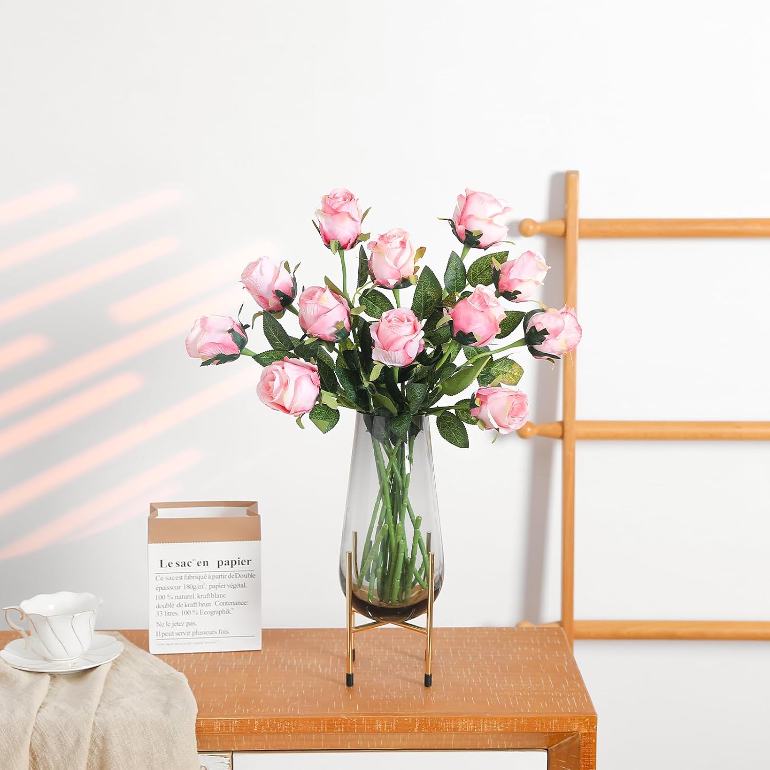 - 【Realistic Floral Design】-Each set includes 12 lifelike roses with 2.3" silk blooms and 18.1" trimmable stems for customized arrangements. Bendable stems mimic natural growth patterns, ideal for adjusting height in vases or creating cascading centerpieces.